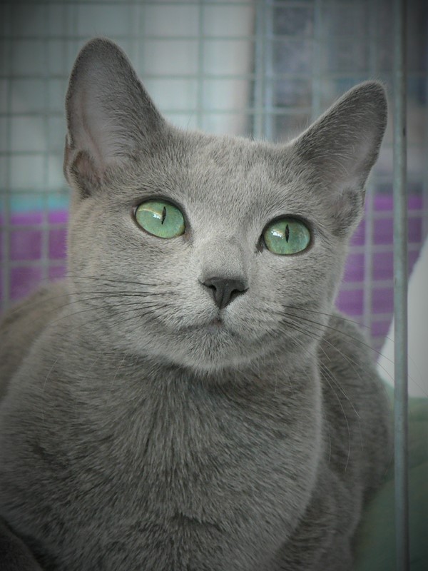 어두운, 슬레이트 회색의 빛이 반짝이는 실버 등 다양한 색상으로 보입니다. 몸에서 눈에 띄는 짧고 빽빽한 털은 러시아 품종의 특징입니다. 그들은 또한 때때로 Archangel Blues라고 불립니다. 1860 년대에 선원들이 대천사 제도에서 영국과 북유럽으로 러시안 블루를 가져간 것으로 추정됩니다. 러시아 밖에서 처음으로 기록된 모습은 1875 년 영국의 크리스털 팰리스에서 대천사 고양이로 등장했습니다. 러시안 블루는 1912 년까지 다른 모든 파란 고양이를 포함한 클래스에서 경쟁되었습니다. 이 품종은 제2 차 세계 대전 이후까지 주로 영국과 스칸디나비아에서 개발되었습니다.