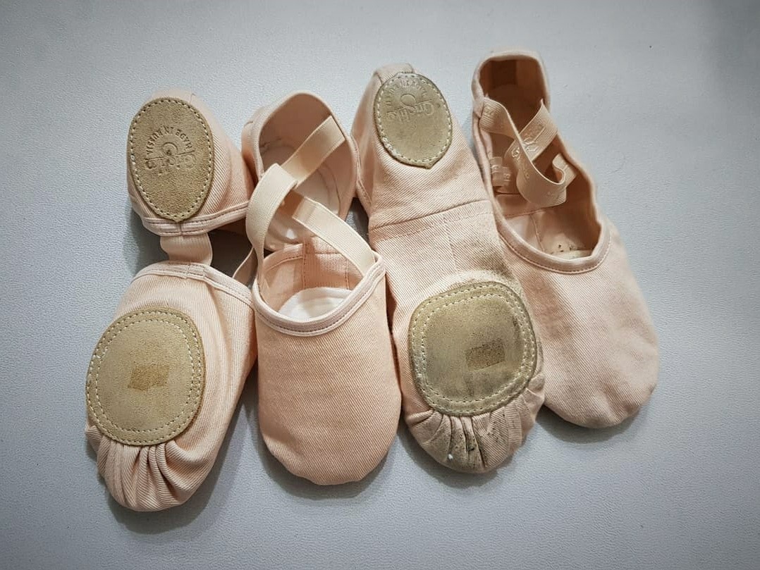 처음 발레를 접하게 되면 필요한 것이 발레복과 타이즈, 그리고 발레 천 슈즈이다. 보통 발레를 생각하면 포인트 슈즈 일명 토슈즈를 생각하는데 그것을 신은 시기는 한참 후의 일이다. 클래스에 연습용으로 신는 슈즈가 바로 이 천 슈즈이다. 발레수업에서 몸에 잘 달라붙고 라인을 드러낼 수 있는 발레복이나, 다리 라인을 잘 드러내고 신축성 좋은 촉감의 타이즈도 중요하지만, 발레 기량을 늘리는데 제일 중요하고 꼼꼼하게 따져봐야 하는 용품이 바로 발레슈즈이다. 대부분의 동작이 발을 이용하게 되고 발의 축과 중심이 흔들리면 아무리 고급 클래스로 넘어가도 기량이 늘어날 수가 없다. 이만큼 중요하게 생각되는 발레천 슈즈에는 여러 종류가 있다. 기본적으로 보통 원단에 따라 나눠지게 되는데 공단 슈즈, 캔버스 원단의 천 슈즈, 스트레칭 원단의 천 슈즈, 가죽 슈즈가 있다. 초보자는 보통 아래 바닥 부분의 솔기를 따지지 않고 원단 기준으로 발레슈즈는 고르게 되고 조금 더 발레에 익숙해지면 여러 가지 슈즈를 접해보는 게 좋다. 분명 발레슈즈는 발레에 재미를 더해줄 아주 큰 요소이기 때문이다.