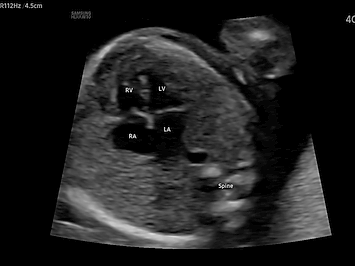 아이들 중에 절반 이상이 이 심장기형으로 사망하고 있다. 치명률이 높기 때문에 자세히 보아야 한다. 위험도는 신경관 결손보다 4배, 심각한 염색체 이상보다 6배나 더 높게 발생한다. 태어난 지 1년 이내에 높게 발생하는 선천적인 심장기형은 4가지나 있다. ventricular septal defect, coarctation of the aorta , transposition of the great arteries , tetralogy of fallot 심장초음파의 정확도가 높음에도 불구하고 임신 2 삼분기에 기형을 진단하는 경우는 매우 낮다. 보통 4 chamber view로 태아 심장으로 관할하고 있기 때문이다. 이 검사 view로 만으로는 위에 열거한 심장기형을 확실하게 찾아내기 어렵다. 그래서 targeting sono나 fetal echocardography를 할 수 있어야 한다.